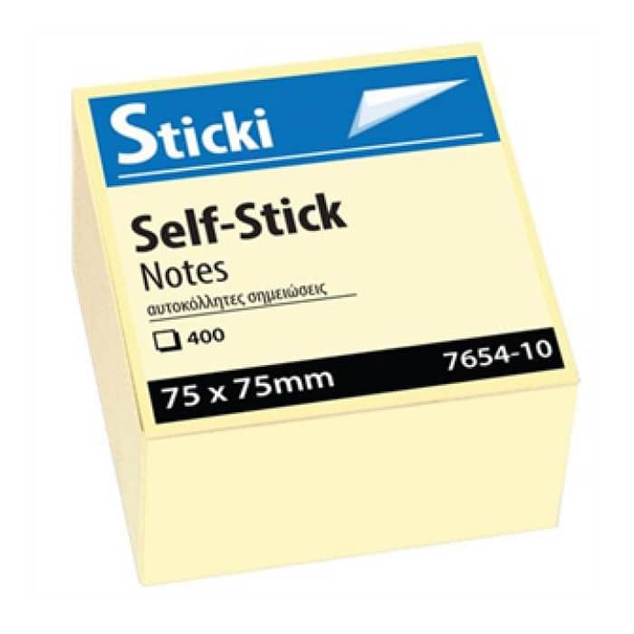 STICKI PASTEL CUBE 75X75MM YELLOW 400SHEETS 7654-10